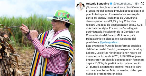 El ministro de Trabajo, Antonio Sanguino, destacó estos resultados, señalando que el país ha completado 16 meses consecutivos de generación de empleo. Sanguino enfatizó que la cifra de ocupados es la más alta registrada históricamente para un mes de octubre, reflejando el dinamismo y la resiliencia de la economía colombiana. Estos avances, según el ministro, consolidan la apuesta del Gobierno por un mercado laboral más inclusivo y robusto.