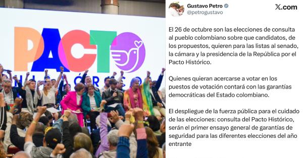 El 26 de octubre de 2025, el Pacto Histórico realizará su consulta interpartidista para elegir candidatos. El presidente Petro aseguró plenas garantías de seguridad y participación en un proceso clave para 2026.